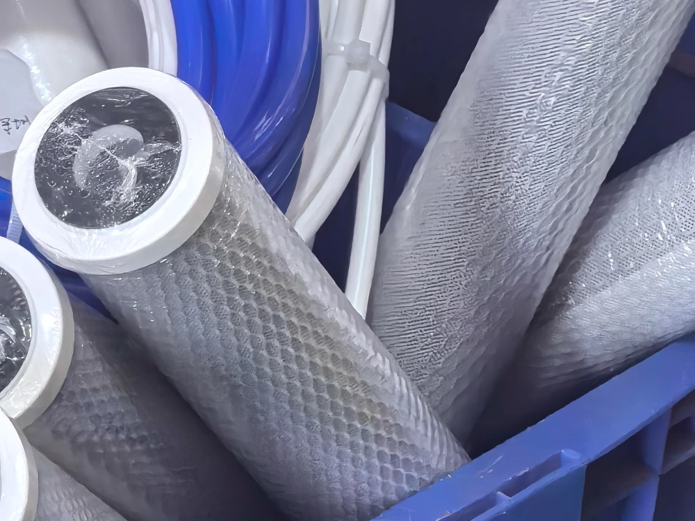 Un filtre de précision est utilisé comme étape finale de prétraitement pour éliminer les minuscules particules supérieures à 1 µm de l'eau.. Il s'agit d'une étape cruciale pour protéger les composants en aval, tels que les membranes RO et UF, contre les dommages..
