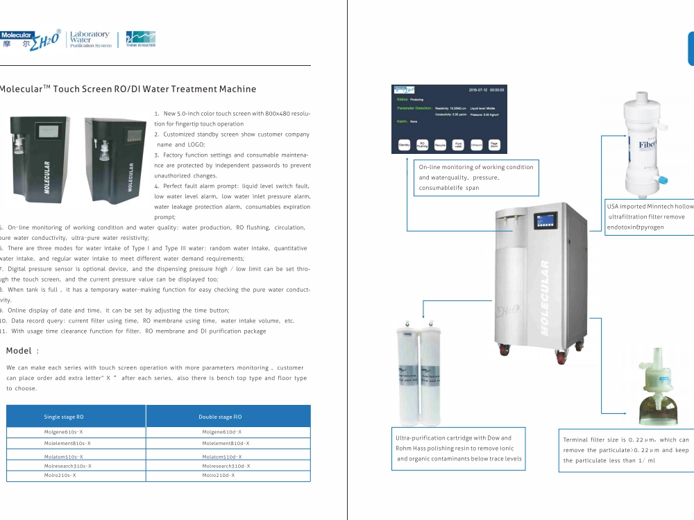 | Série Molresearch | 5~150LPH | Type3+Type2 Eau | Test de toxicité, analyse quantitative des éléments traces, solution tampon ; AAS (spectroscopie d'absorption atomique) ; IC/ICP-MS analyse des éléments |